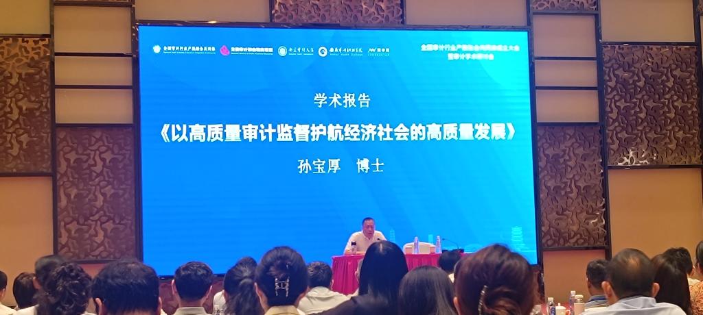 会后由孙宝厚博士(原审计署副审计长)作题为《以高质量审计监督护航经济社会的高质量发展》学术报告。他从审计工作高质量发展的基本概念、如何推进审计工作高质量发展、构建审计工作高质量发展指标体系等三个方面,对审计监督在护航经济社会高质量发展中所发挥的重要作用进行了阐述。